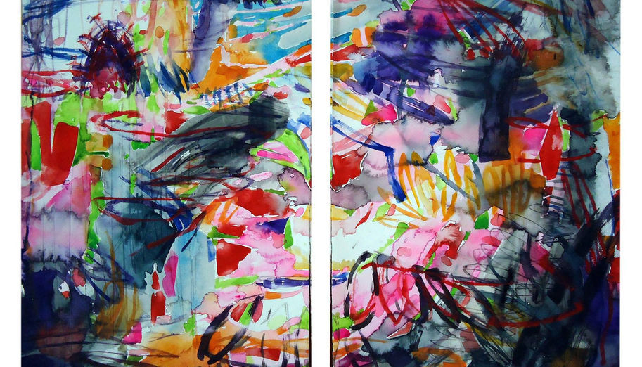 L’exposition « Ardent topique », par exemple, présente des œuvres inédites sur toile inspirées par la métropole bordelaise, ainsi qu’une série d’aquarelles sur papier, récit de son carnet de bord du métro parisien, évoquant sur la feuille ses voyages entre les différentes stations, les affiches déchirées, l’humour des inscriptions et graffitis croisés sur les murs, des bribes de plans, dans un lyrisme proche de l’abstraction teinté par la douceur de la couleur qui se dilue à l’eau, comme la mémoire efface peu à peu la vivacité du souvenir.